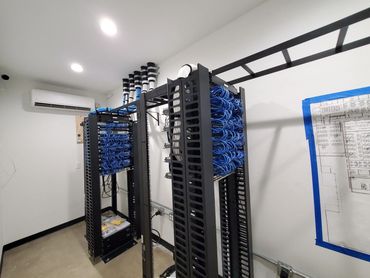 Professional installation of Cat6, fiber optics, server room, speakers, cameras, and more for your business.